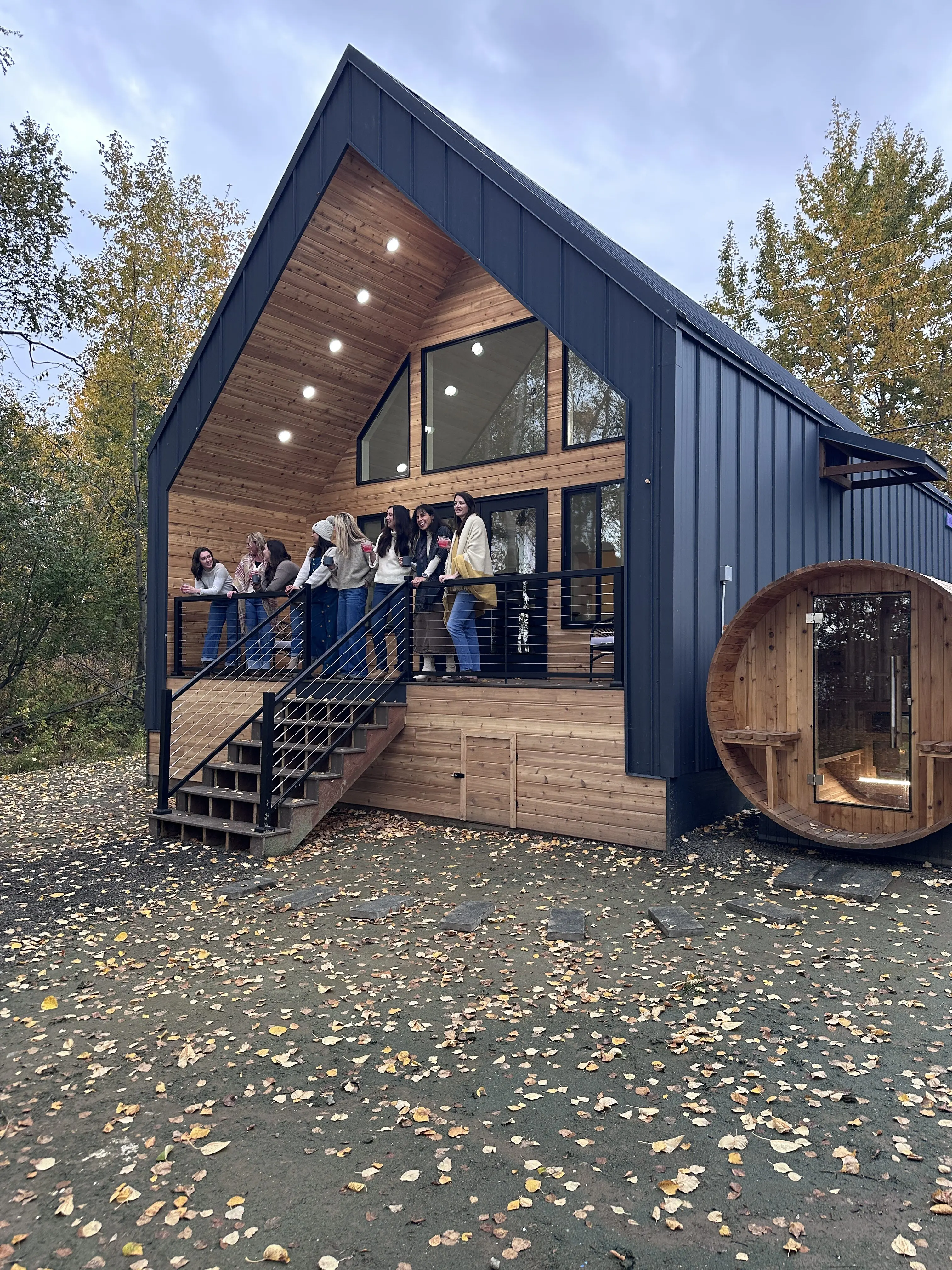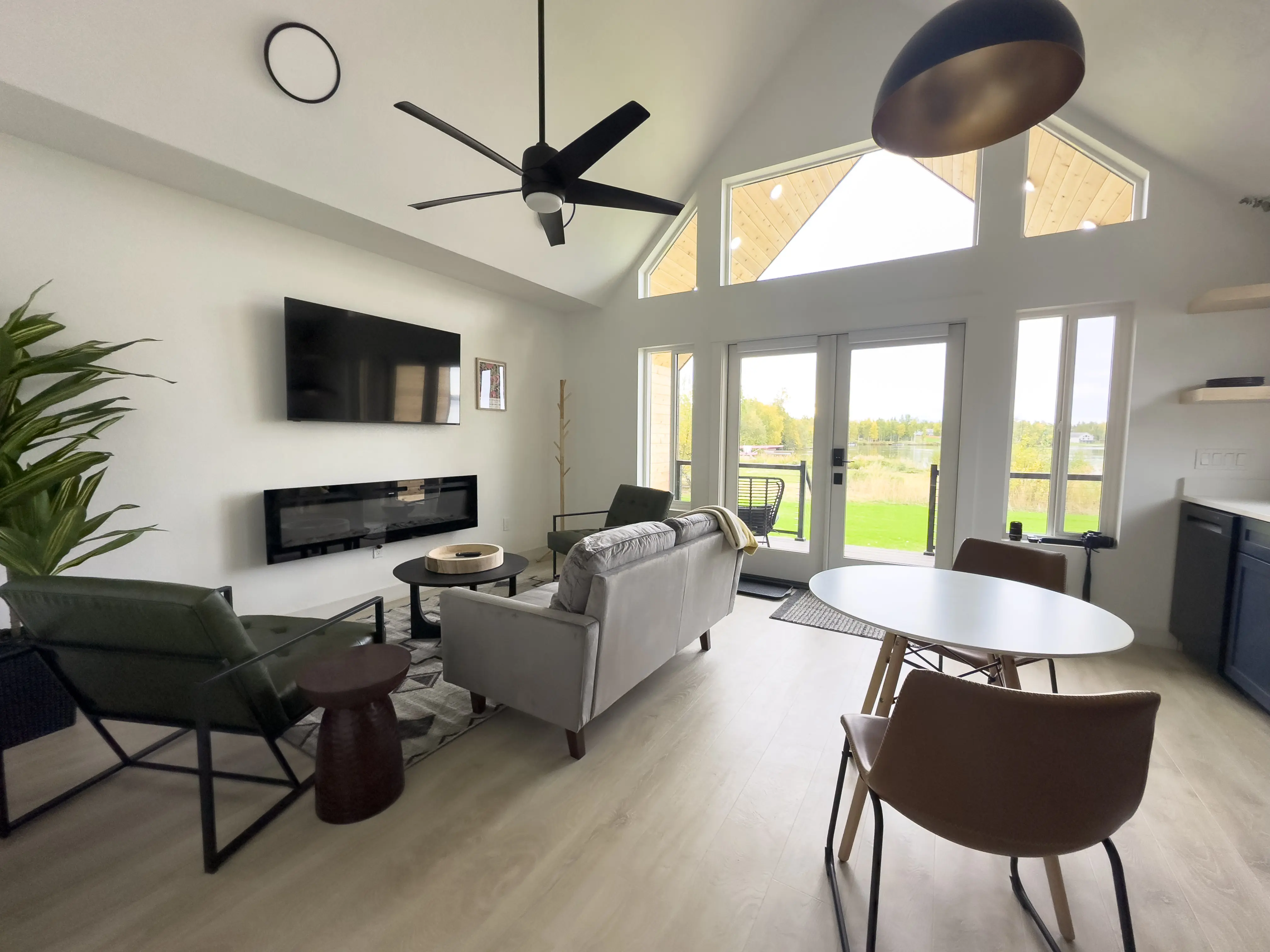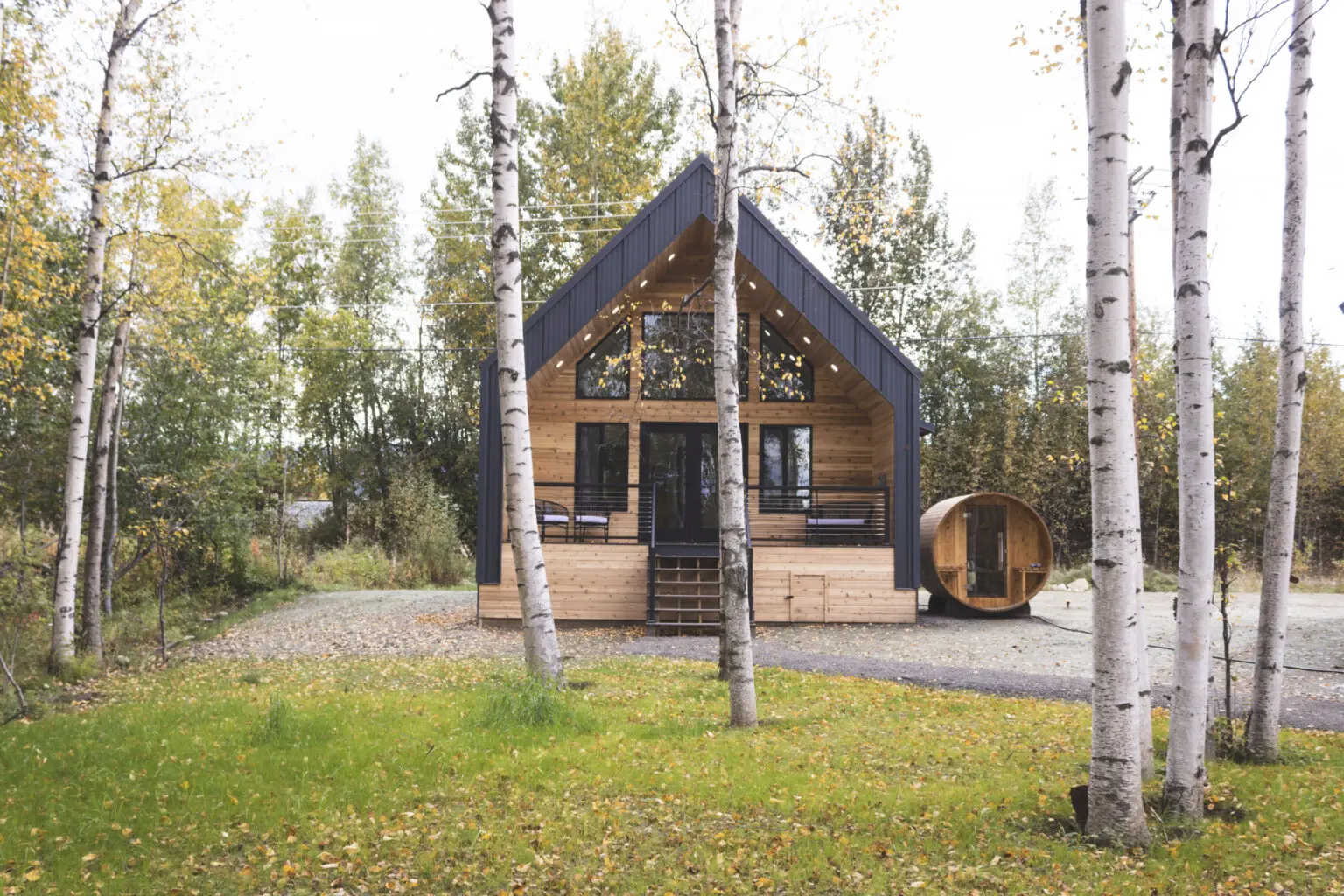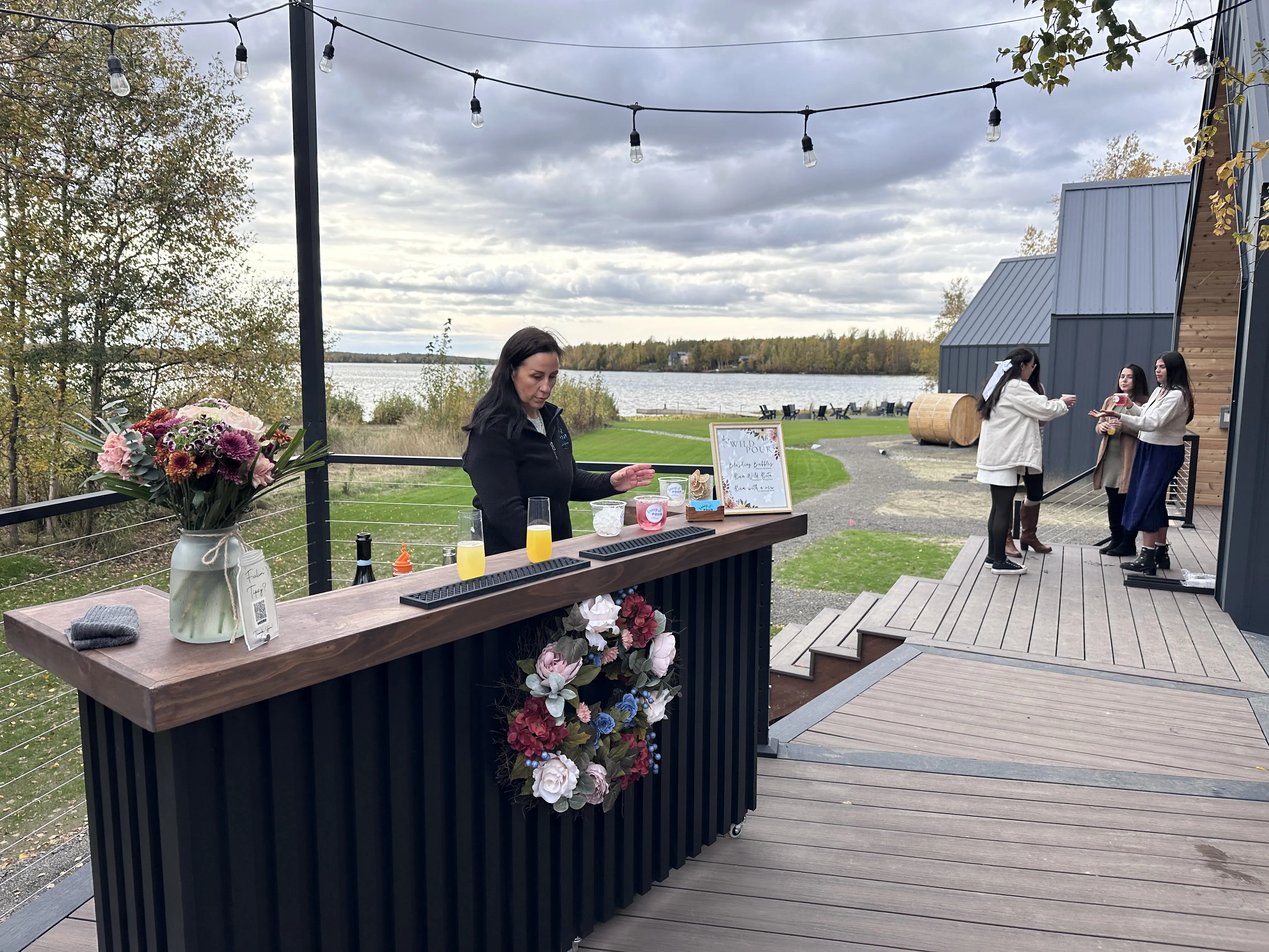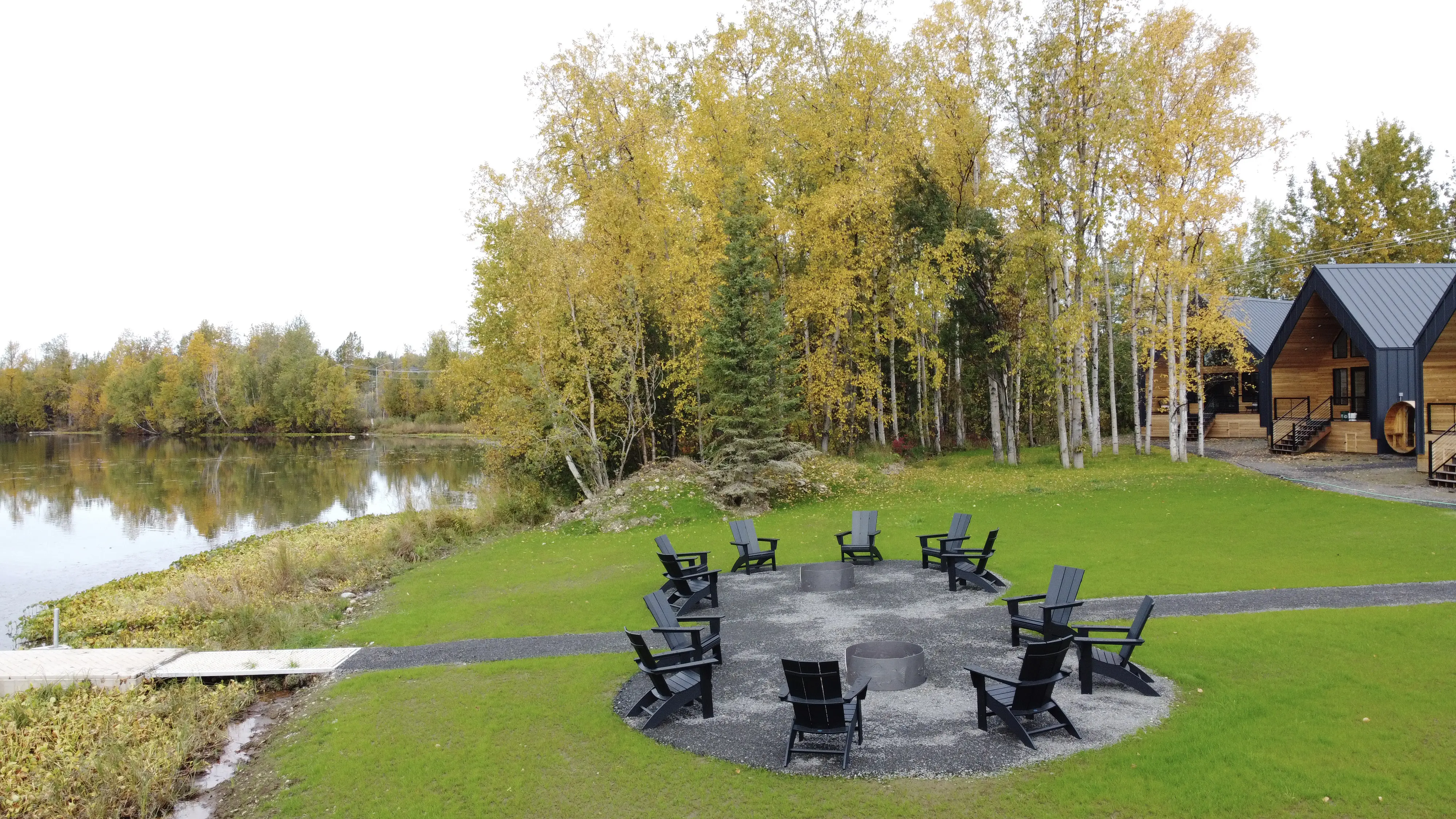 Stillwater Cottages is a boutique property on the shores of Lake Lucille in Wasilla offering modern, comfortable cottages just minutes from downtown Wasilla. The seven cottages each have their own private barrel sauna and access to shared amenities like lakeside firepits, kayaks, lawn games and a playground. The cottages are an ideal home base for wedding guests—or the perfect setting for a full property buyout. Couples can reserve the entire site for a private wedding weekend, creating a relaxed, all-in-one experience for friends and family. Five two-bedroom and two one-bedroom cottages sleep 24 people in 12 Queen-sized beds. One cottage is wheelchair-accessible.